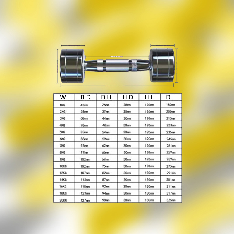 | 手柄直径 | 1公斤:2。8厘米 2公斤:3厘米 3公斤:3厘米 4公斤:3厘米 5公斤:3厘米 6公斤:3厘米 7公斤:3厘米 8公斤:3厘米 9公斤:3厘米 10公斤:3厘米 12公斤:3厘米 14公斤:3厘米 16公斤:3厘米 20公斤:3厘米 |