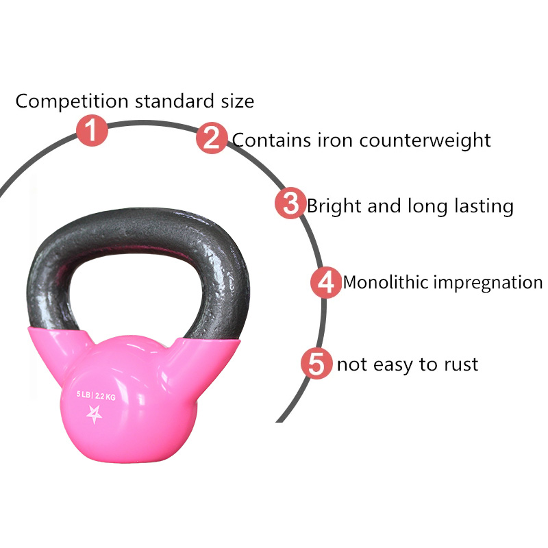 5。清晰的重量识别:每个壶铃都标有清晰的数字,让您可以轻松选择适合锻炼的重量,简化锻炼程序并最大限度地减少组间停机时间