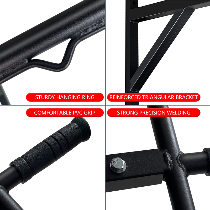 3。空间利用率高:基本引体向上杆通常采用紧凑的设计,易于安装和存放,不会占用太多空间。无论是家庭健身区、户外健身设施还是健身房,该设备都可以轻松容纳。